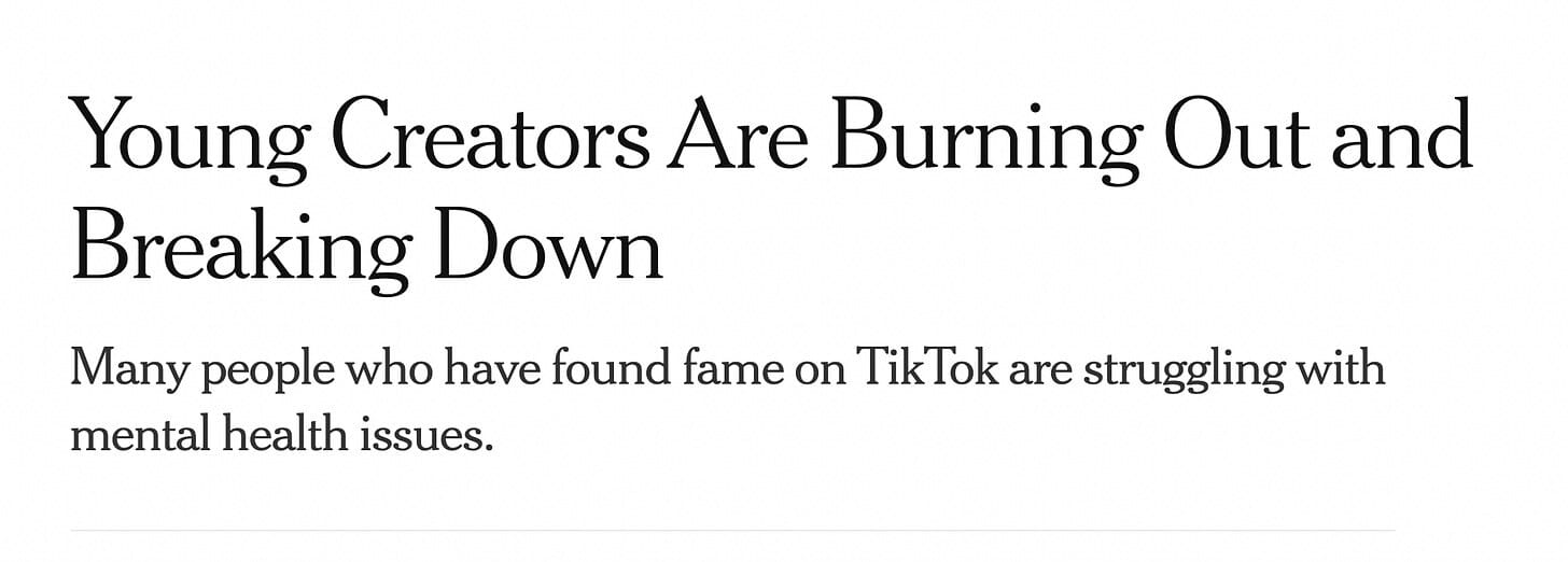 NY Times reported on how many people who have found fame on TikTok are struggling with mental health issues as they contend with monetising an online following.