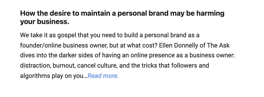 Trust me when I say that for business owners/creators/anyone building a personal brand that a newsletter is one of the most fulfilling ways to grow your audience away from the algorithms where you control the entire trajectory. And it’s fun, IMO.