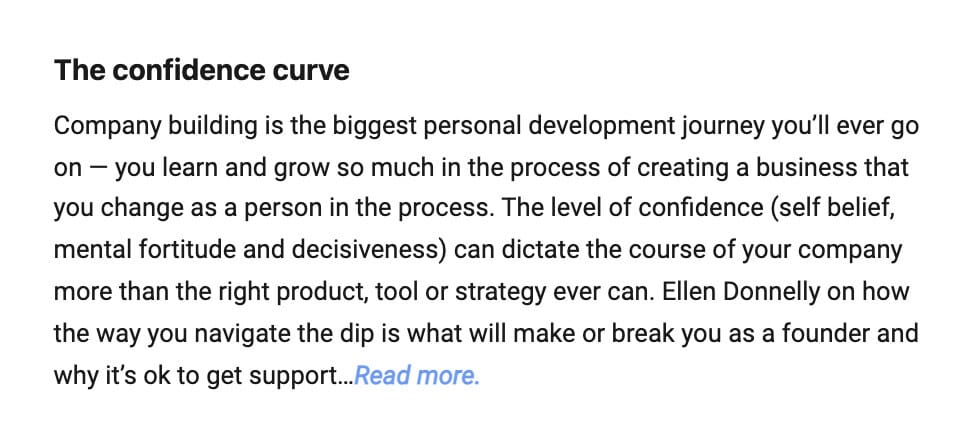 When I honed in on early stage entrepreneurs finding clarity on their new ventures I was able to bring case studies from my coaching sessions combined with a deep curiosity. I loved this new niche which in turn helped to grow the newsletter since I bought a passion and the creativity to concepts such as the confidence curve, founder DNA, business model framework and more.