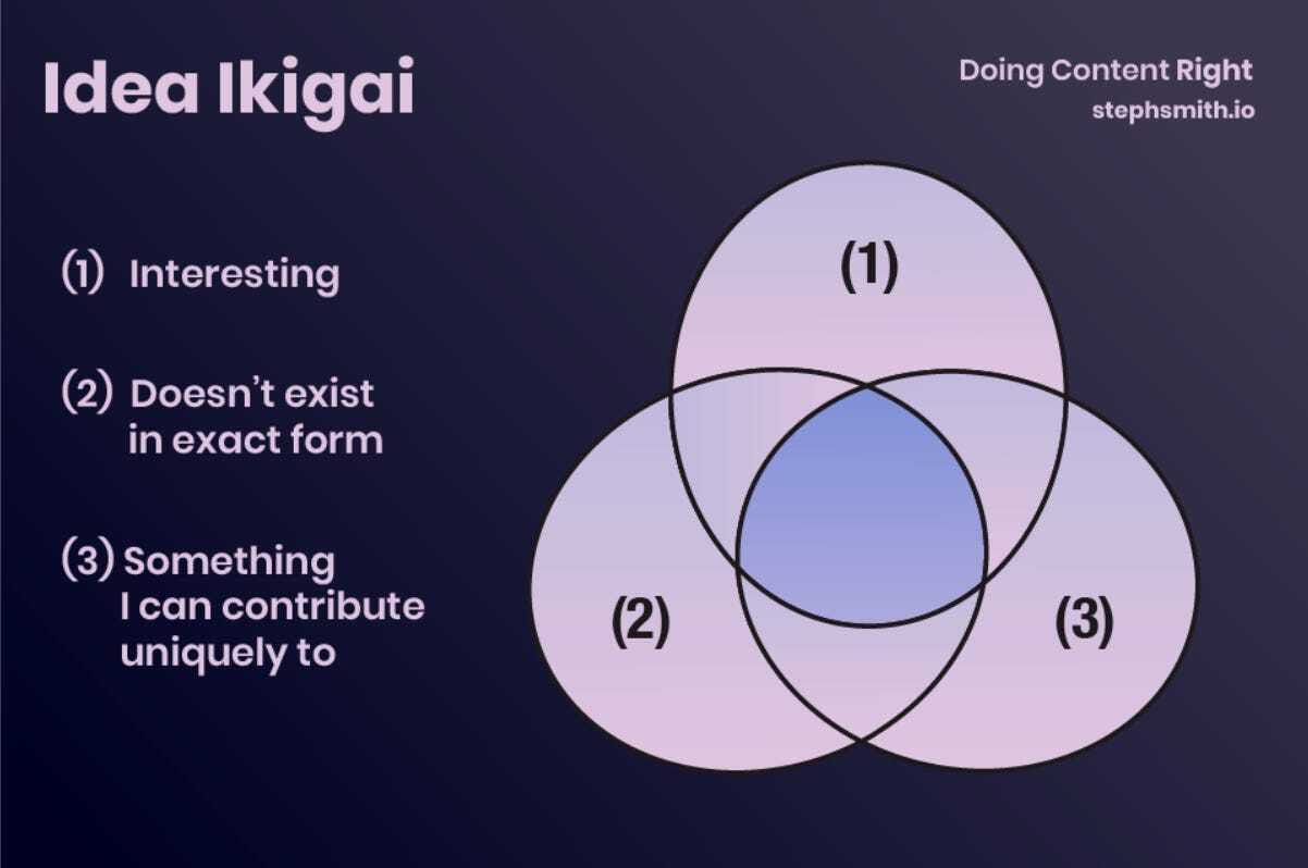 In this instance, I refer you to this beautiful concept by Steph Smith, the ‘Idea Ikigai’: