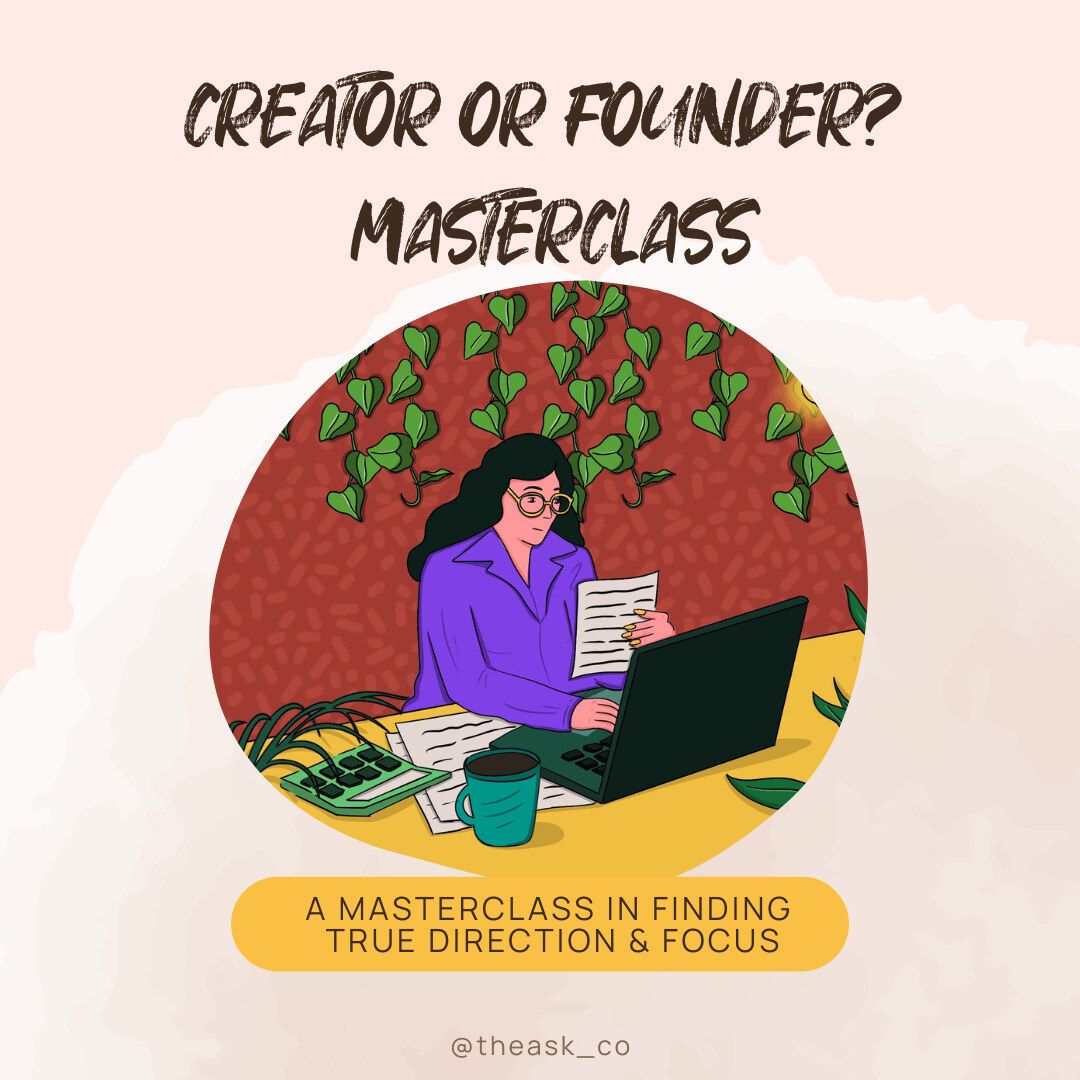 Join me and a group of like-minded people pursuing entrepreneurial careers and figuring it all out, at Creator or Founder? A Masterclass on Thursday 15th September 1.30pm UK time.